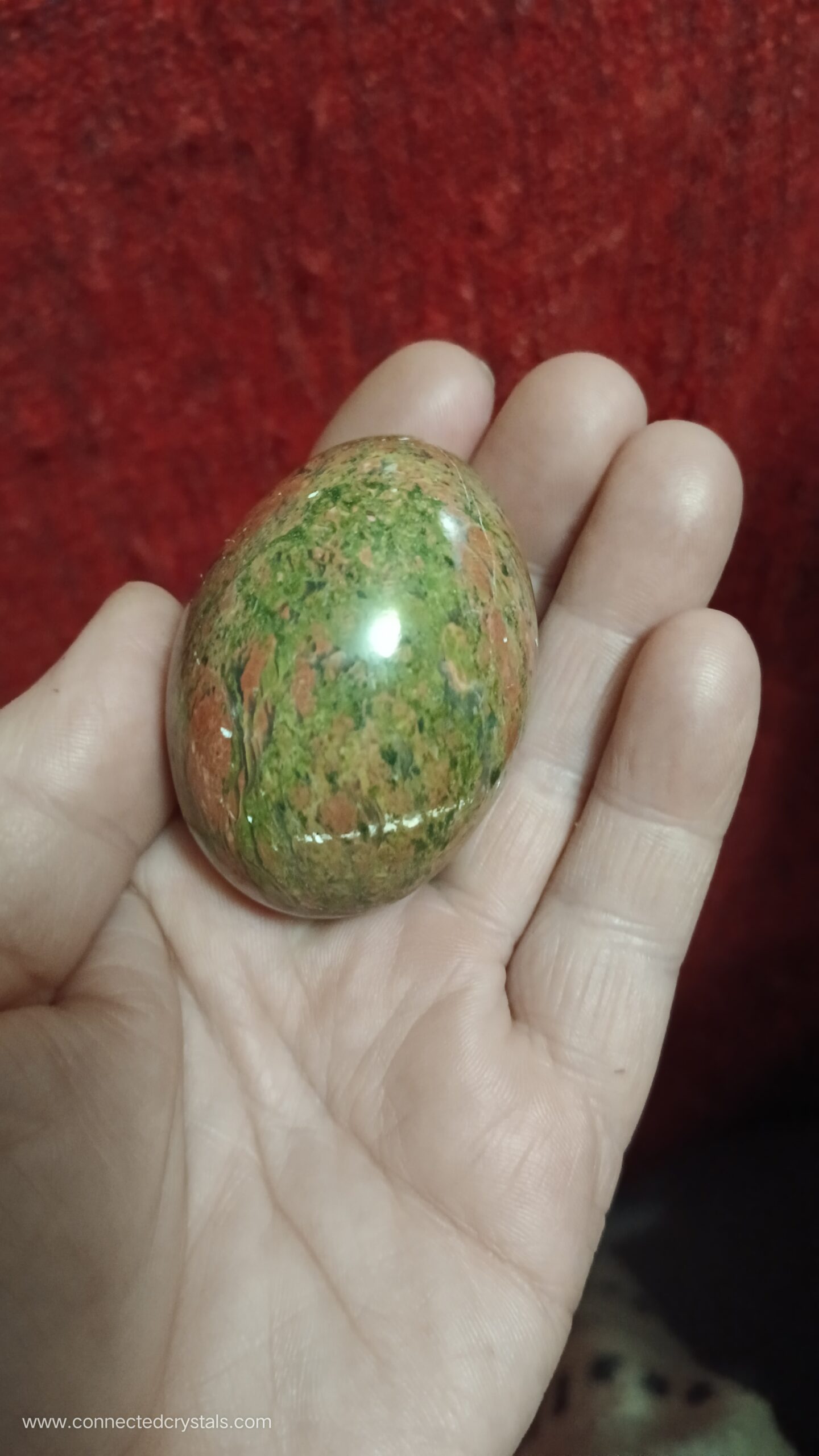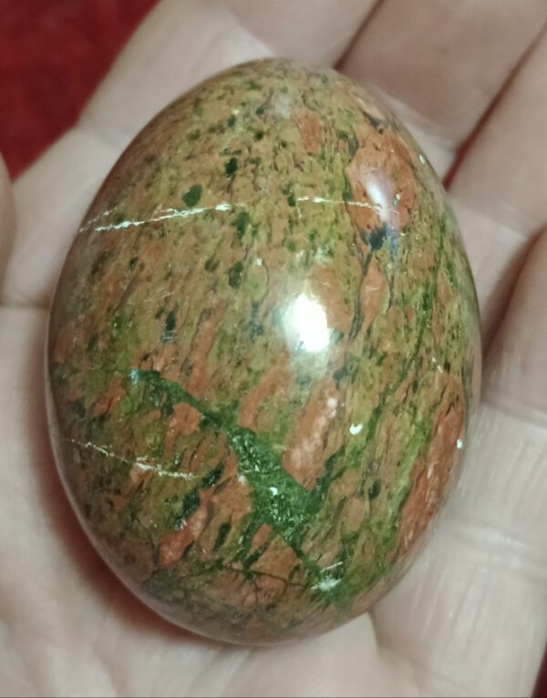 Unakite shines up well when polished and is often used for carvings, eggs and jewellry.